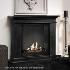 Kos Bioethanol Kamin Schwarz Naturstein Mit Steindekor Und Medaillon