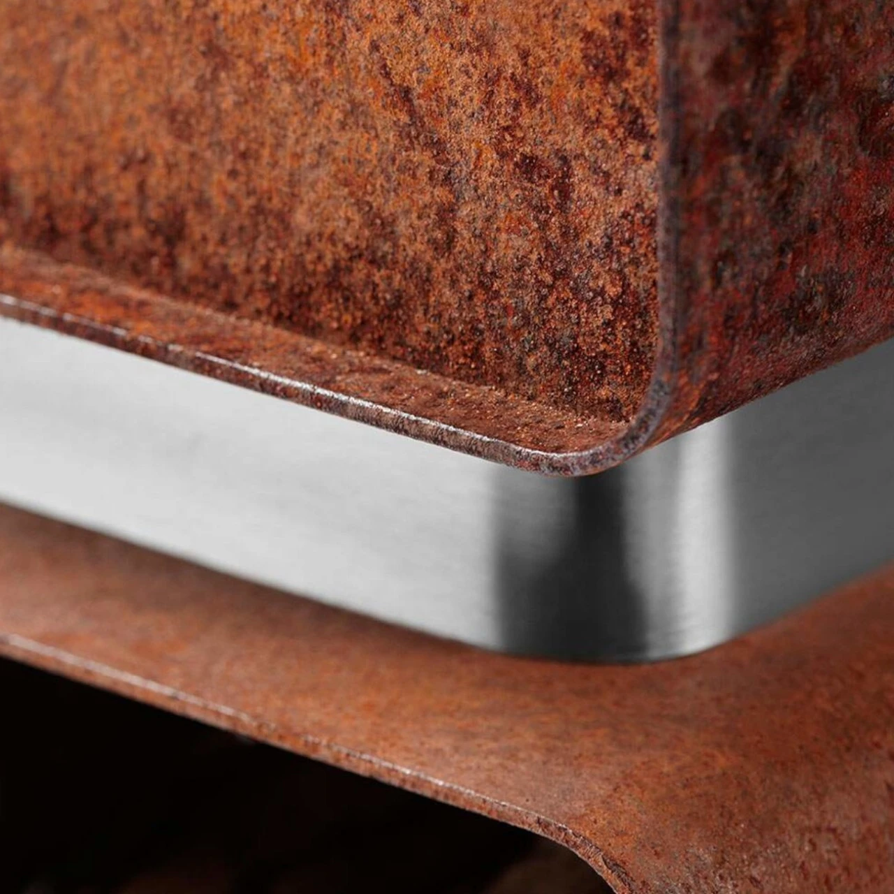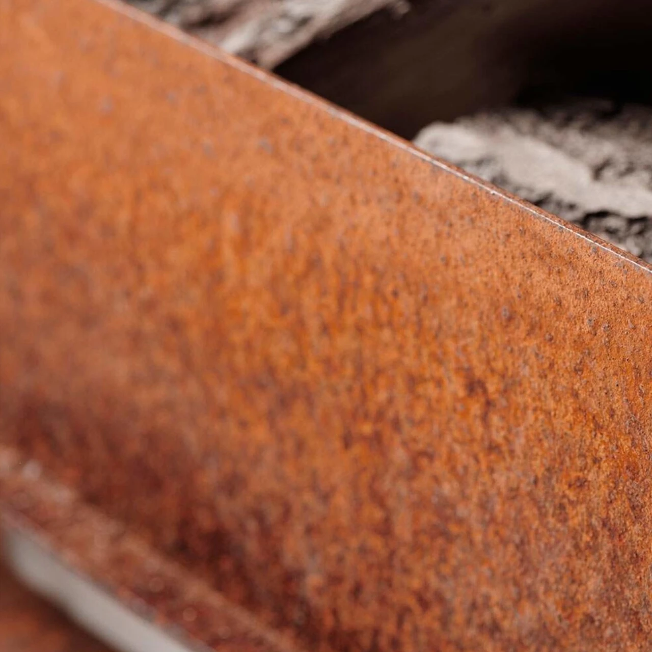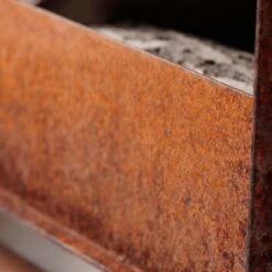 Material Cortenstahl und Edelstahl: Wenn Sie den Alpha Gartenkamin erhalten, sind die Cortenstahlteile unbehandelt (grau). Sie werden im Laufe der Zeit die entsprechende Patina erhalten. Der Abstandshalter aus Edelstahl sollte regelmäßig gereinigt werden, damit er sauber und glänzend aussieht. Der Abstandshalter aus Edelstahl kann kleine Unebenheiten in seiner Textur aufweisen.