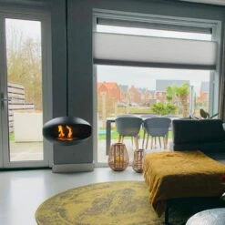 Der luxuriöse und moderne AERIS Biokamin ist ein hängendes Designelement, das die volle Einstellbarkeit eines modernen Hängekamins bietet. Die Hängestange ist in sechs verschiedenen Höhen mit einer Drehung um 360° einstellbar (nur bei Edelstahl Teleskopstange).