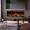 Das entspiegelte Glas sorgt für eine besondere Holzfeueroptik, als ob man vor einem offenen Kamin sitzt. Zusammen mit dem realistischen Flammenbild und der eingebauten Heizung kommt selbst für Holzfeuer-Romantiker das echte Kamin-Gefühl in Ihr Haus.