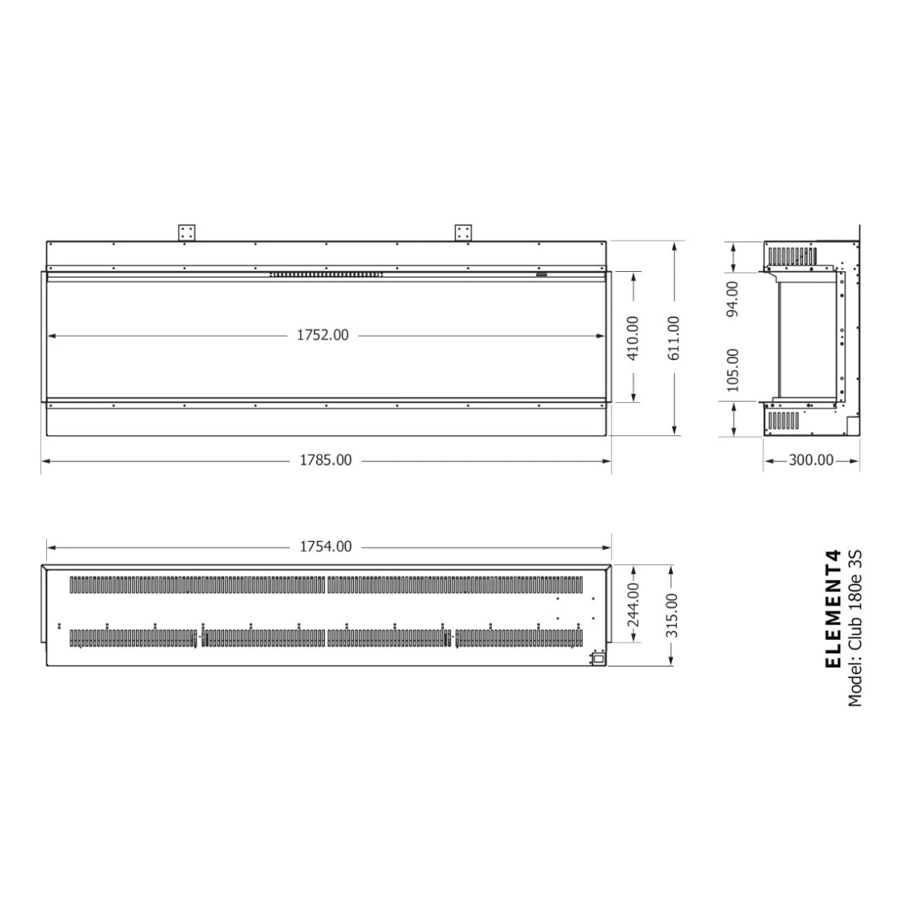 - Download Masszeichnung Elektrischer Kamin-Club 180 e 3S