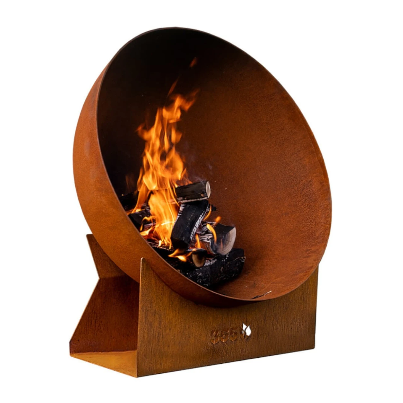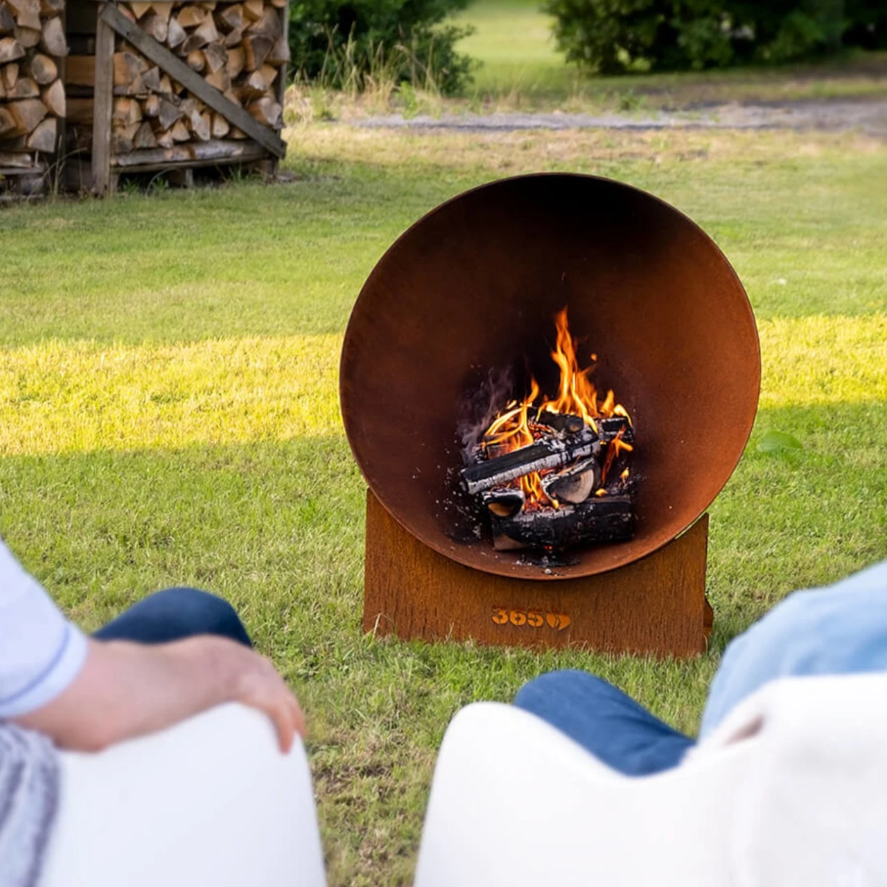 Die Feuerschale besteht aus Gusseisen und trotzt damit Hitze, Regen und Belastung. Der Sockel ist aus 3 mm starkem Cortenstahl gefertigt. Mit der Zeit entwickelt diese Feuerstelle eine wunderschöne Edelrost-Patina, die ihr einen einzigartigen, rustikalen Stil verleiht. Du kannst diese Feuerschale einfach in deinem Garten stehen lassen – durch schlechtes Wetter wird sie nur noch schöner!