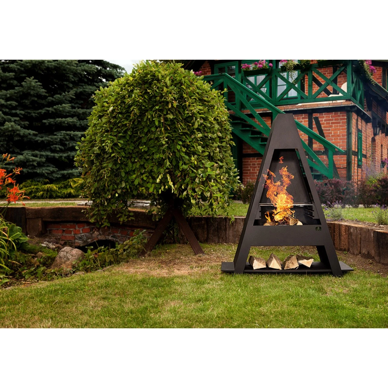 Das mitgelieferte Feuerrost ist sowohl für Holzkohle als auch für kleine Holzscheite geeignet und leicht zu reinigen. Die Holzscheite können Sie im dafür vorgesehenen Holzfach aufbewahren.