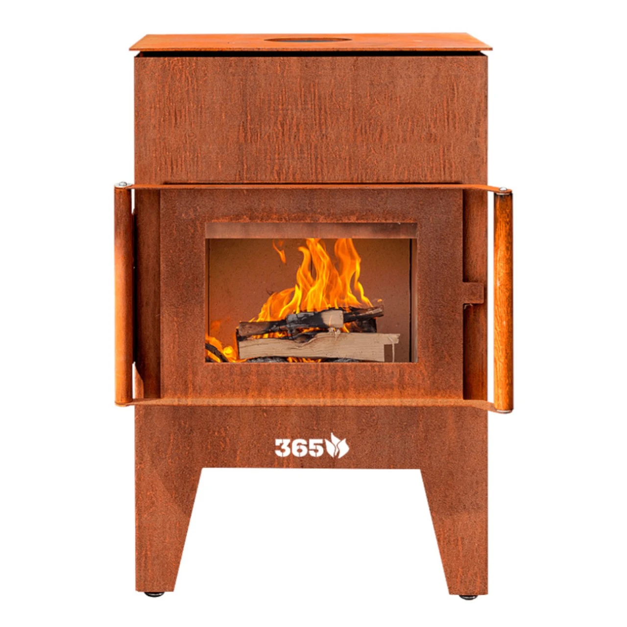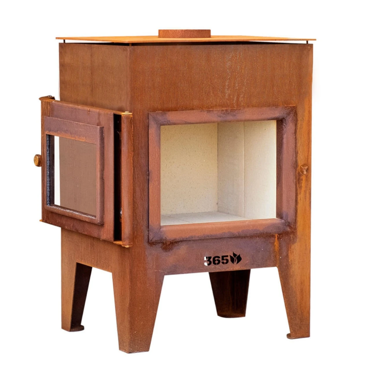 Mit oder ohne TĂĽr? Dieser Gartenkamin kann beides.