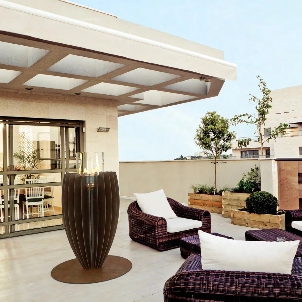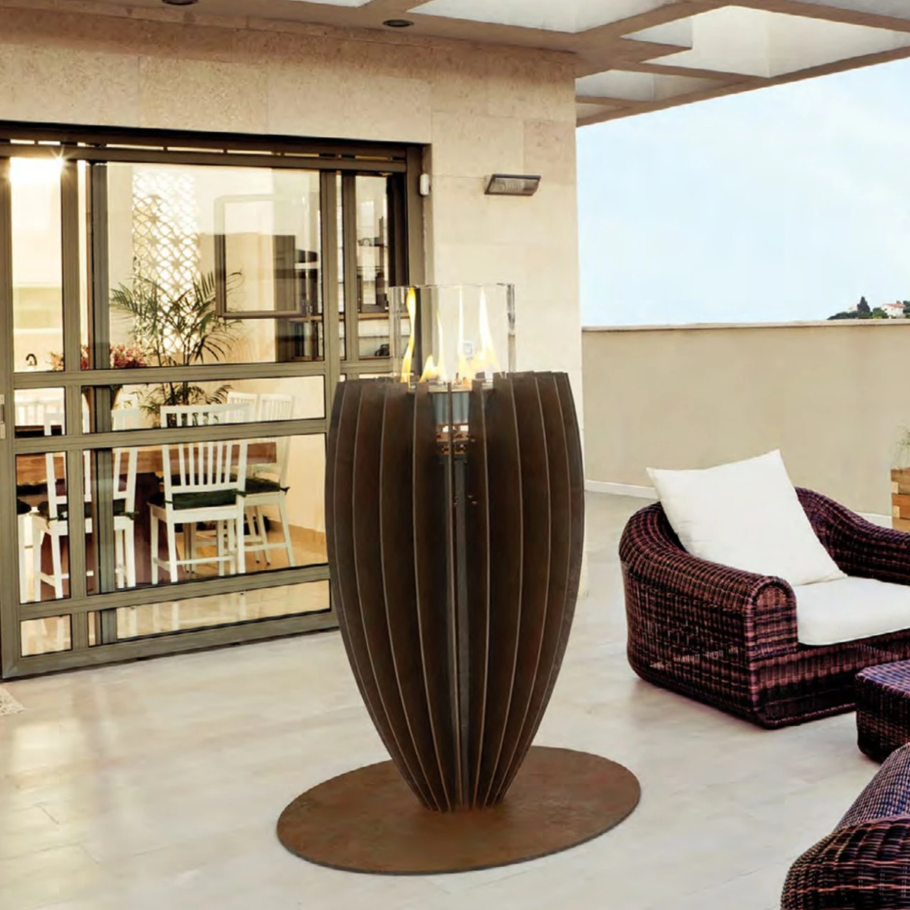 Modell:Â GlammFire Tuli Premium Biokamin / Ethanolkamin aus Corten Stahl