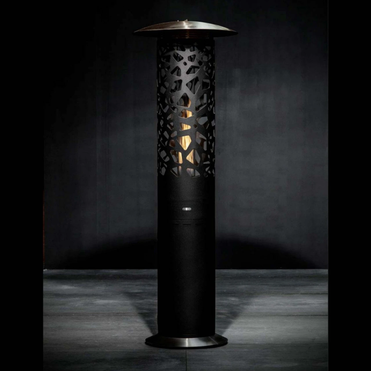 Der Heizpilz Tile-Hyperion zeichnet sich durch Details und sorgfältig gestaltete Geometrie aus, die es zu einem besonderen Stück machen. Die Flamme vibriert anmutig und demonstriert ihre Kraft durch absichtlich geschnittene Räume und Linien.