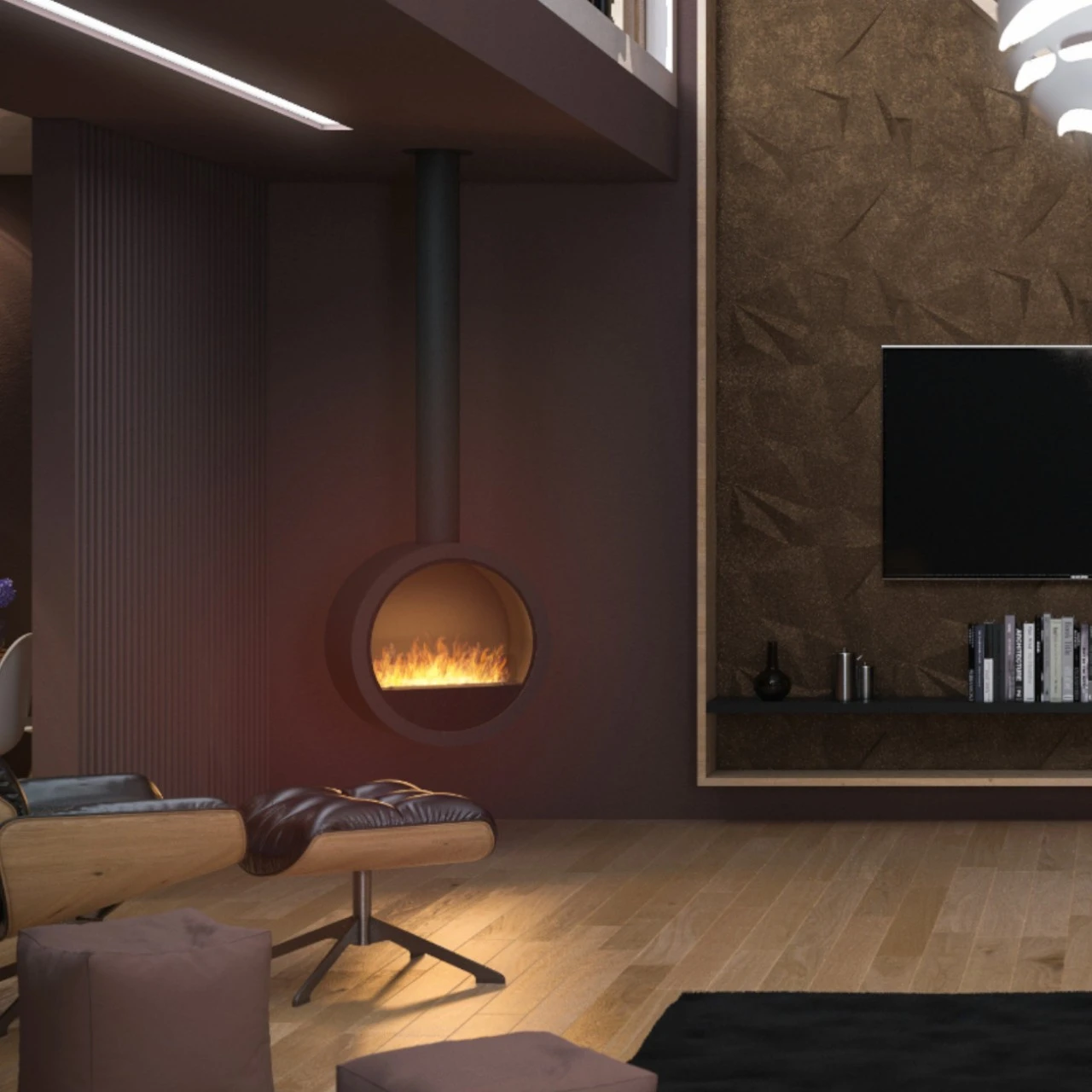 „Der Kamin INCYRCLE ist ein hängender Designer-Kamin, der an die Decke montiert wird. Seine Form fĂĽgt sich perfekt in den Innenraum mit modernem Charakter oder im Loft-Stil ein.“
