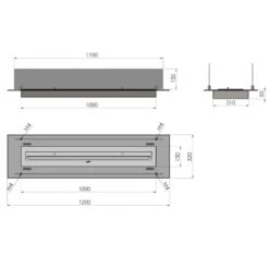 Die 1000 mm große Feuerstätte bietet die Möglichkeit, eine lange und effektive Brandlinie in Ihren Innenraum zu integrieren. Ein einfacher Ausschnitt und eine absorbierende Faser, die den Behälter füllt, lassen das Feuer während der gesamten Brennzeit gleichmäßig und stabil brennen. Mit dem Riegel der Feuerstätte können Sie den Kamin jederzeit regulieren und effektiv löschen. Die Feuerstätte ist so konzipiert, dass sie in ein Material eingebettet werden kann, das gegen hohe Temperaturen beständig ist, z. B. Stein, Ziegel. Es besteht jedoch auch die Möglichkeit, die Feuerstätte in einem Material zu montieren, das gegenüber hohen Temperaturen empfindlicher ist, z. B. Möbelplatten.