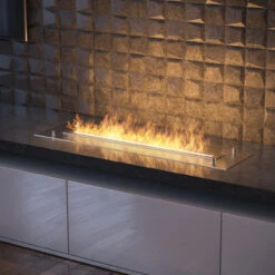 Der INSERT 1200 Ethanolkamin mit einem 1000 mm großen Brenner ist ein fertiger Satz, der beispielsweise in einem Schränkchen montiert werden kann oder in eine vorgesehene Nische. Dank seiner Konstruktion nimmt eine Einlage die Wärme des Brenners auf, wodurch die Oberfläche beispielsweise eines Schränkches nicht zu heiß wird. Die Einlage hat auch ein Entlüftungssystem, das verhindert, dass Druck unter dem Brenner entsteht, wenn Kraftstoff überläuft.