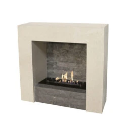 Der Xaralyn Kamin Milos hat eine moderne Formgebung und ist aus Naturstein (Fossilstein) hergestellt. Beim Entwurf dieses Modells wurde Naturstein in verschiedenen Farben kombiniert was diesem Kamin zusätzliche Größe verleiht. Da der Kamineinsatz bei diesem Modell an der Rückwand installiert ist, entsteht so ein besonders schönes Feuerbild.
