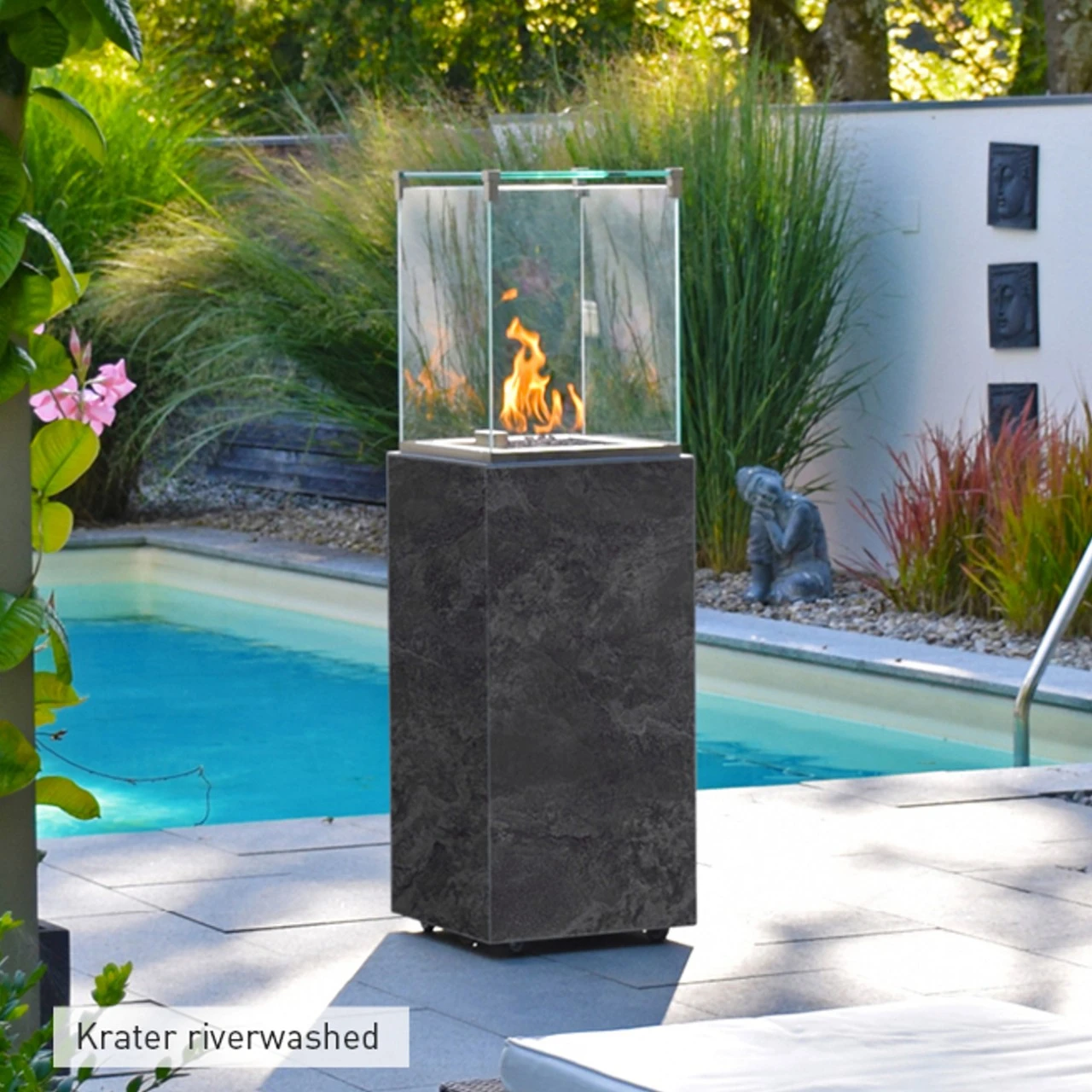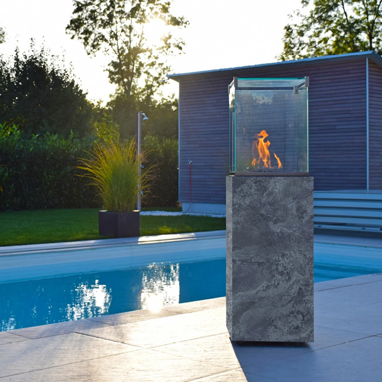 Die hochwertige Gas-Brennereinheit bietet optimale Flammenregelung und sorgt für ein einmaliges Flammenbild. Die stufenlos einstellbare Flammenhöhe*ist ebenso Standard wie sämtliche Gas-Sicherheitseinrichtungen (z.B. Kippsicherung). Die komplette Brenneinheit ist ebenfalls aus hochwertigem gebürsteten Edelstahl verarbeitet und enthält darüberhinaus dekorative Lavasteine.