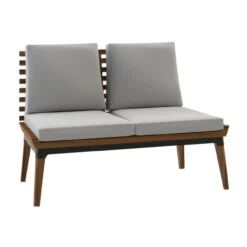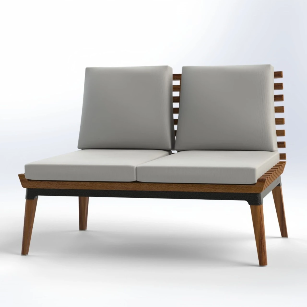 Das 2-Sitzer-Sofa aus der Nexo-Serie ist aus hochwertigem Iroko-Holz und schwarzem Stahl oder Cortenstahl gefertigt. Das Zweisitzer-Sofa und der Rest der Kollektion bilden ein komplettes Set, das perfekt auf eine Terrasse oder ein Restaurant passt.