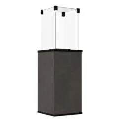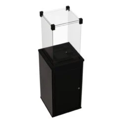 Das untere Teil des Gehäuses besteht aus Stahl und wird von drei schwarzen Glaspanelen ummantelt. Die vierte Seite ist mit einer Stahl Tür mit Schloss ausgestattet und beim Patio Mini mit einer Stahl Aushägetür.