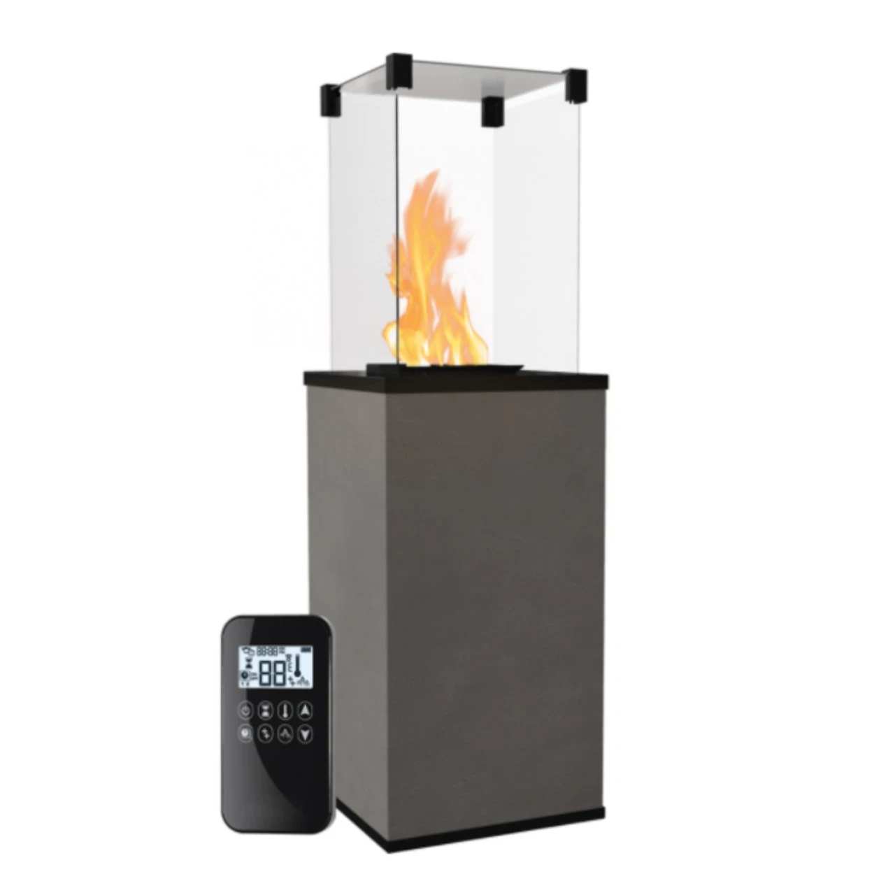 PATIO ein stilvoller Heizpilz, der Wärme und Licht überall dort bietet, wo wir eine einzigartige und gemütliche Atmosphäre schaffen wollen. Seine Besonderheit ist, aus allen vier Ecken kann das Feuer betrachtet werden. Dies macht ihn zu einem einzigartigen Terrassen- oder Gartenkamin.