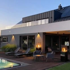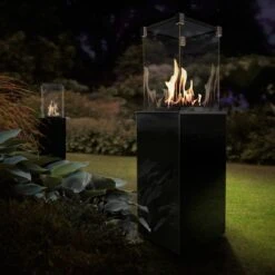 PATIO ein stilvoller Heizpilz, der Wärme und Licht überall dort bietet, wo wir eine einzigartige und gemütliche Atmosphäre schaffen wollen. Seine Besonderheit ist, aus allen vier Ecken kann das Feuer betrachtet werden. Dies macht ihn zu einem einzigartigen Terrassen- oder Gartenkamin.