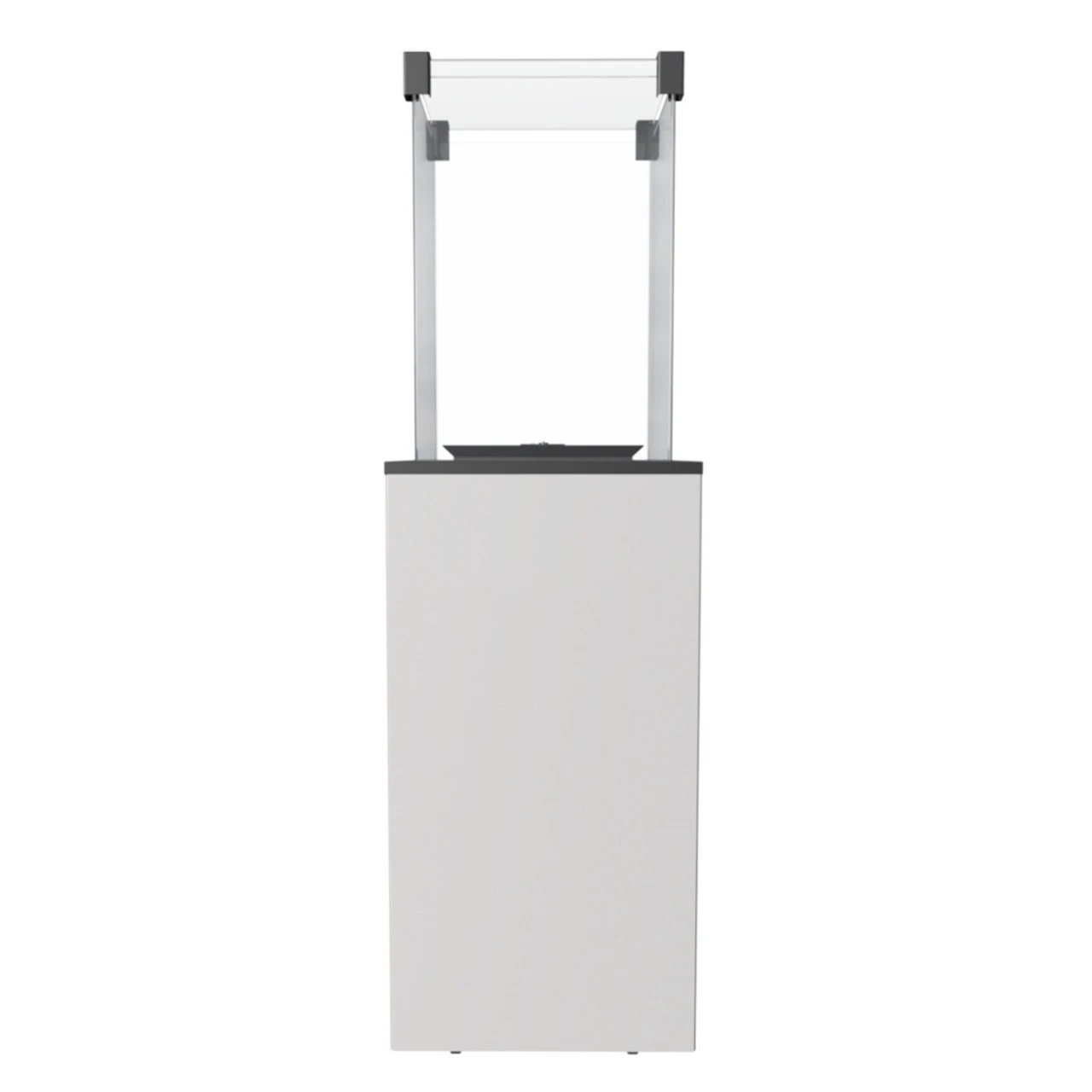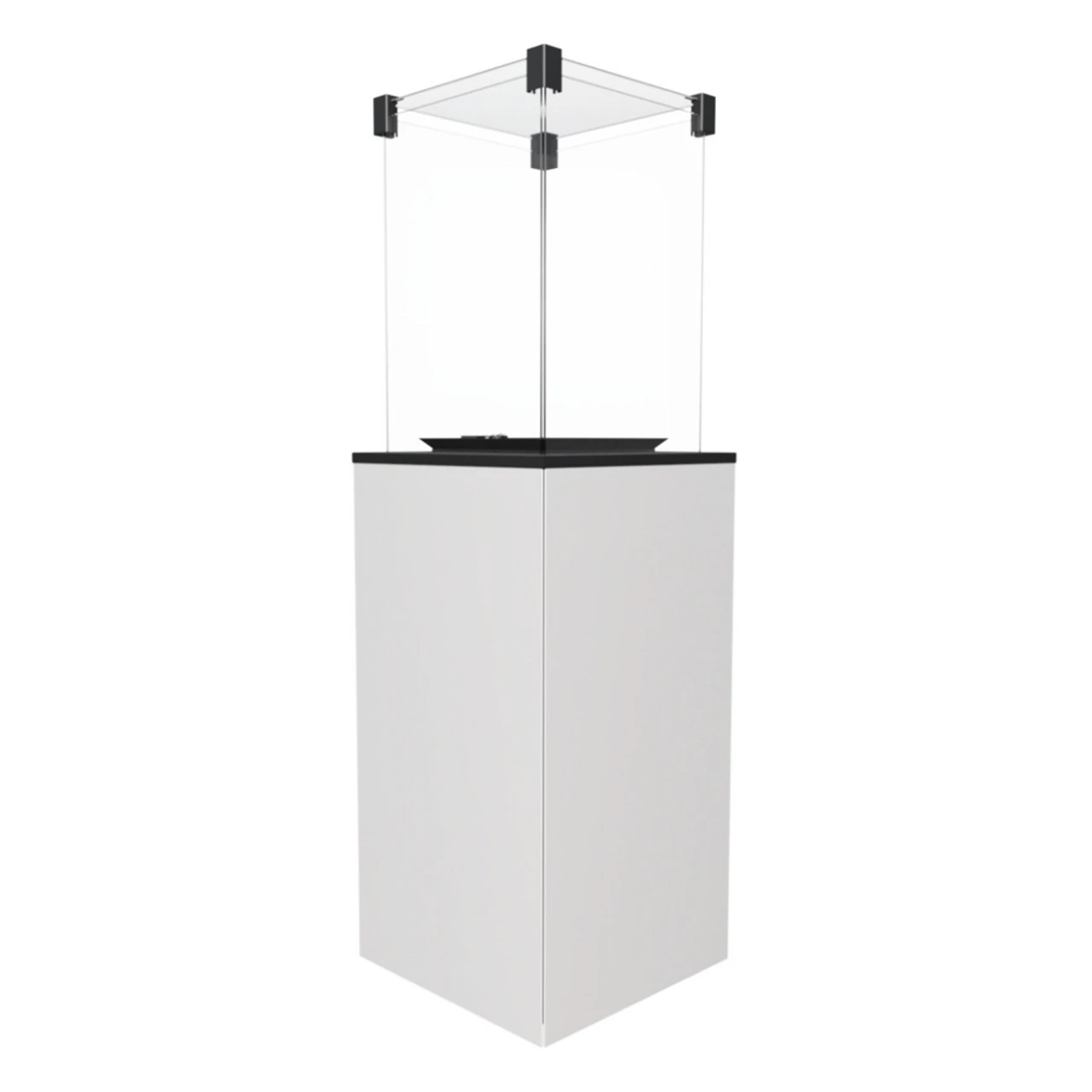 Das untere Teil des Gehäuses besteht aus Stahl und wird von drei schwarzen Glaspanelen ummantelt. Die vierte Seite ist mit einer Stahl Tür mit Schloss ausgestattet und beim Patio Mini mit einer Stahl Aushägetür.