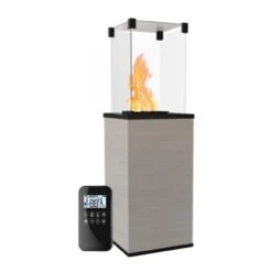 Mit der optional zu erwerbendenen Fernbedienung kann das Gerät von einem unberechtigten einschalten, zb. durch Kinder, geschützt werden, oder das Ein- und Ausschalten zu einem bestimmtem Zeitpunkt oder Tag festgelegt werden. Natürlich ist es auch Möglich die Flamme und die Temperatur über die Fernbedienung zu kontrollieren (für mehr Info, siehe Bedienungsanleitung im Downloadbereich).