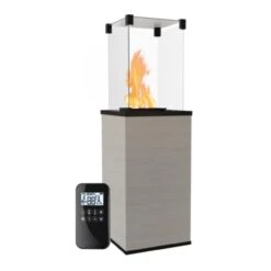 Mit der optional zu erwerbendenen Fernbedienung kann das Gerät von einem unberechtigten einschalten, zb. durch Kinder, geschützt werden, oder das Ein- und Ausschalten zu einem bestimmtem Zeitpunkt oder Tag festgelegt werden. Natürlich ist es auch Möglich die Flamme und die Temperatur über die Fernbedienung zu kontrollieren (für mehr Info, siehe Bedienungsanleitung im Downloadbereich).