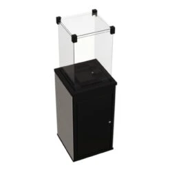 Das untere Teil des Gehäuses besteht aus Stahl und wird von drei schwarzen Glaspanelen ummantelt. Die vierte Seite ist mit einer Stahl Tür mit Schloss ausgestattet und beim Patio Mini mit einer Stahl Aushägetür.