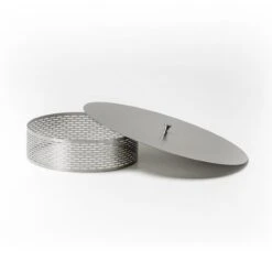 Zum Auslöschen der Flamme und zum Schutz der Glasfeuerschale dient der passgenaue Edelstahl-Deckel „QLid” mit einem Durchmesser von 54 bis 75 cm aus rostfreiem, seidenmatt geschliffenem Edelstahl.