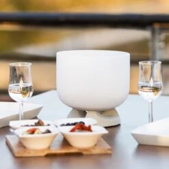 Die Glasfeuerschale „QFlame Pure 20“ hat einen Durchmesser von 20 cm und misst eine Höhe von 15 cm. Sie besteht aus 100% hochreinem Quarzglas und besticht nicht nur durch ihr puristisches Design, sondern auch durch die Hitzebeständigkeit bis zu 1300 °C und das einzigartige rot-orange Leuchten der Schale.