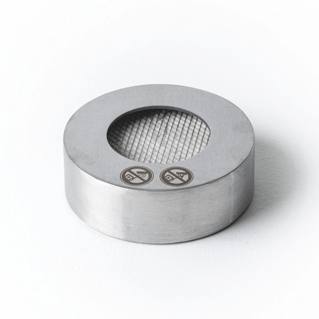 Zum Auslöschen der Flamme und zum Schutz der Glasfeuerschale dient der passgenaue Edelstahl-Deckel „QLid“ mit einem Durchmesser von 21 cm aus rostfreiem, seidenmatt geschliffenem Edelstahl.