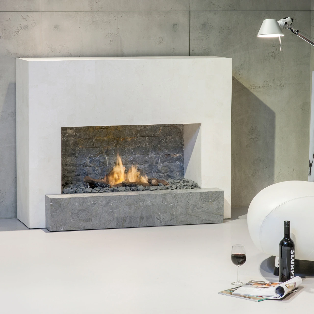 Der Xaralyn Kamin Santos hat eine moderne Formgebung. Beim Entwurf dieses Modells wurde Naturstein in verschiedenen Farben kombiniert was diesem Kamin zusätzliche Größe verleiht. Durch seine imposanten Abmessungen ist der Kamin Santos ein echter Blickfang.