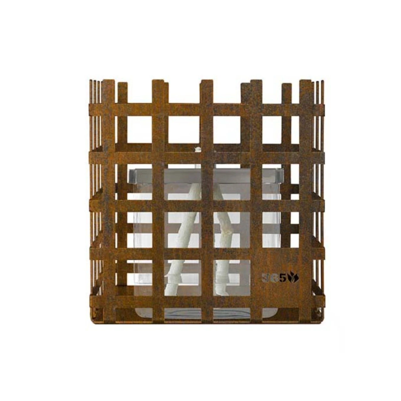 FeuerCampus365 Würfel Öl-Lampe ELDUR Cortenstahl – Eine Gartenfackel im Korb, geschützt und doch transparent